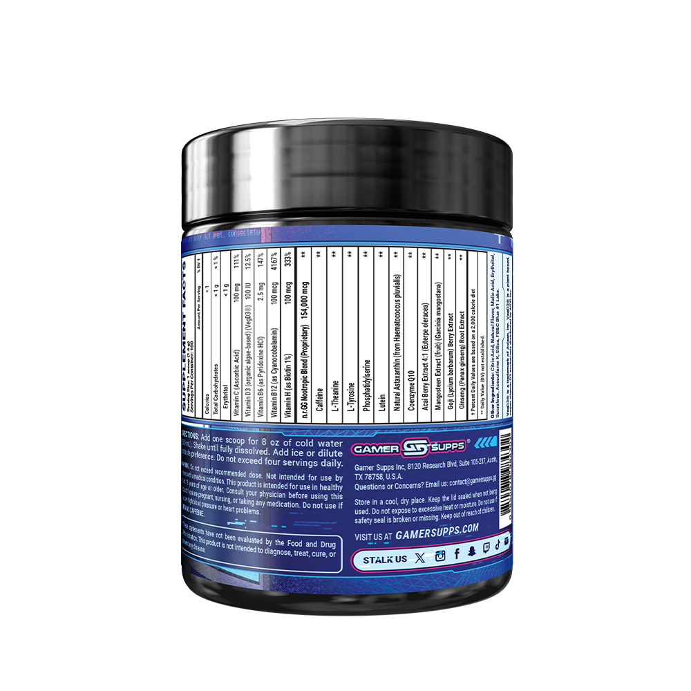GG is the ultimate energy and focus formula designed to Level Up Your Gaming. The highest quality ingredients make up an energy formula that mixes completely and provides a healthier and more cost effective energy drink.