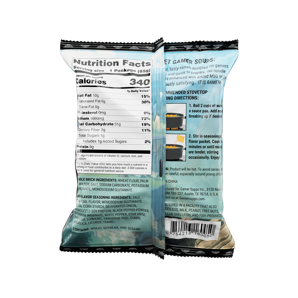 Instant, tasty ramen designed for gamers. Cheap and quick to prepare, our noodle soup is enhanced with added MSG to be deliciously satisfying… IT’S RAMEN!!!