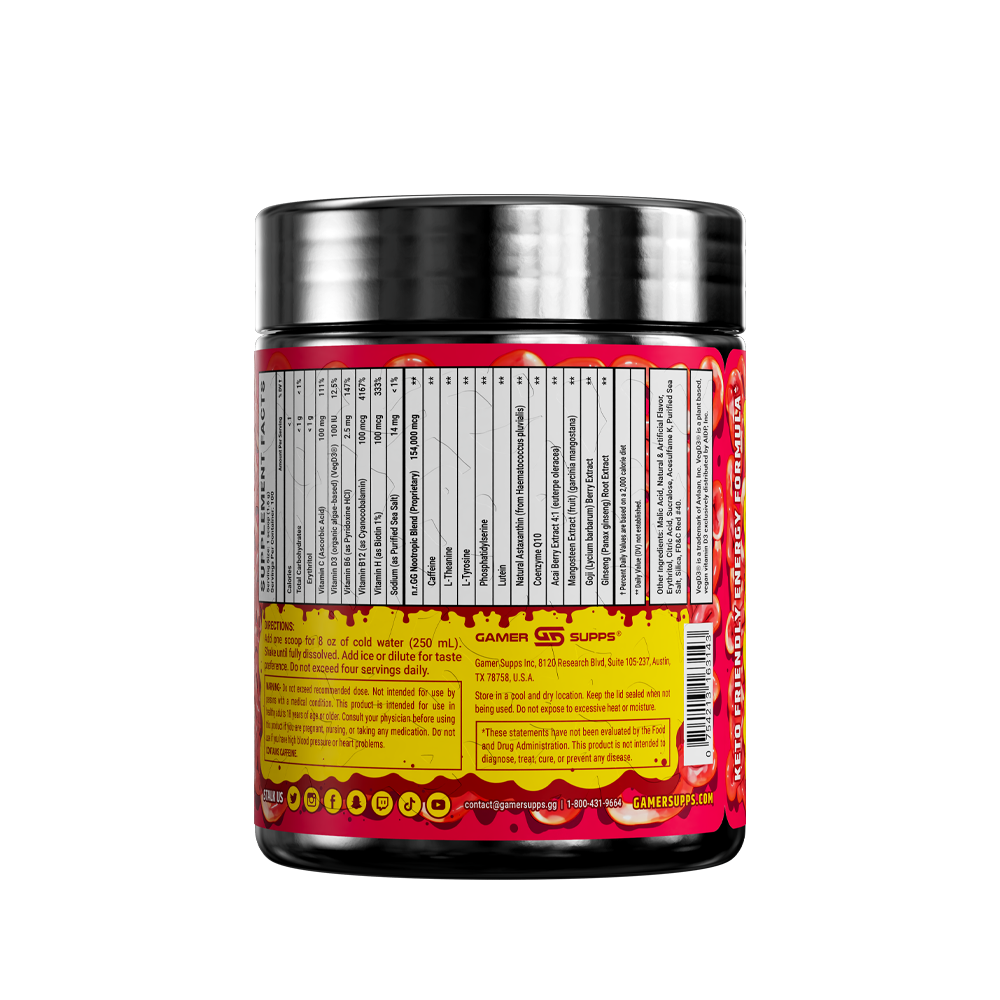 GG is the ultimate energy and focus formula designed to Level Up Your Gaming. The highest quality ingredients make up an energy formula that mixes completely and provides a healthier and more cost effective energy drink.